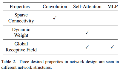 - MLP는 global receptive field를 가지지만 dynamic weight는 사용하지 않는다.