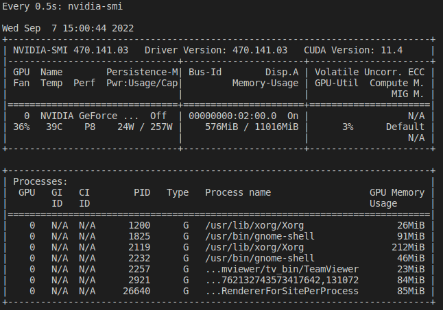 각 process 마다 할당된 GPU 용량을 확인할 수 있습니다.